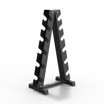 Diseño que ahorra espacio. El diseño de marco A de este soporte de pesas maximiza el espacio del suelo almacenando mancuernas en forma vertical, con un fácil acceso y un almacenamiento adecuado y eficiente para tu gimnasio.