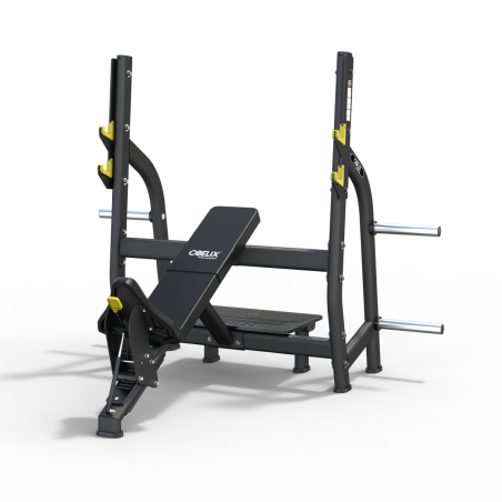 El banco olímpico inclinado Movement 2.0 de Obelix® se utiliza para desarrollar la fuerza y volumen del pectoral involucrando principalmente las fibras superiores del músculo. Diseñado teniendo en cuenta tanto el uso como la instalación, el banco inclinado combina características fáciles de usar con detalles inteligentes para garantizar la seguridad y minimizar el mantenimiento.