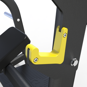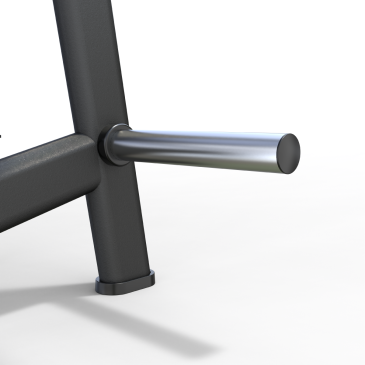 Los ganchos cuentan con plásticos UHMW incorporados para proteger el moleteado de la barra. Además, los pasadores de almacenamiento de pesas integrados mantienen las pesas a mano y el área de levantamiento ordenada.