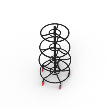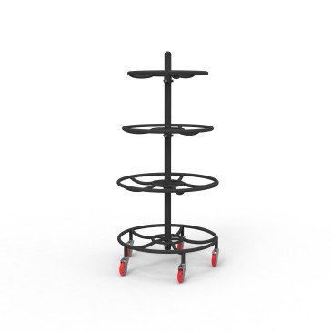 Ideal para guardar fácilmente los balones. Cuatro estantes con espacio para un total de 12 balones. Los anillos son ajustables en altura. Incluye ruedas de transporte para mover el estante (incluye freno).