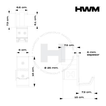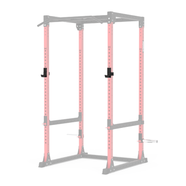 Los J-Cups Alpha se venden en pares y son compatibles con Power Racks Alpha Series HWM® (ver más) o racks de perfiles de 60*60 mm con perforación frontal de 26 mm.