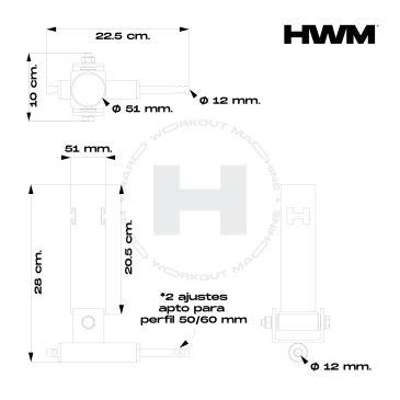 Power Racks Delta Series HWM® (ver más) y Power Racks Alpha Series HWM® (ver más) o racks de perfiles desde 50 a 60 mm con perforación de 13 mm.