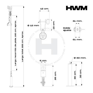 Esta polea te permite realizar una gran variedad de ejercicios de fuerza, desde jalones para espalda hasta extensiones de tríceps, todo desde la comodidad de tu rack. Es perfecta para desarrollar fuerza muscular y resistencia, ofreciendo una alternativa a las máquinas de gimnasio tradicionales sin ocupar espacio adicional. La relación cable polea es de 1:1