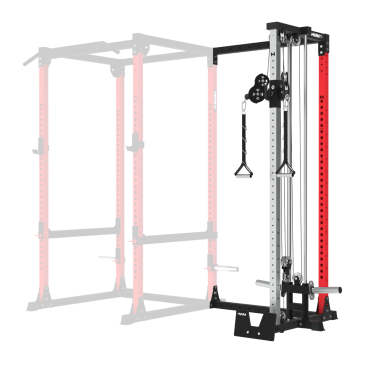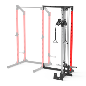 La Polea Lateral Alpha ha sido creada para ser el complemento perfecto para tu gimnasio en casa. Se integra de forma fluida y segura con los **Half Racks y Power Racks de la Serie Alpha HWM®**. Su diseño “plug-and-play” te asegura que la instalación sea rápida, sin la necesidad de herramientas complejas. Además, los pilares modulares del accesorio incluso permiten que lo uses como soporte para otros accesorios: