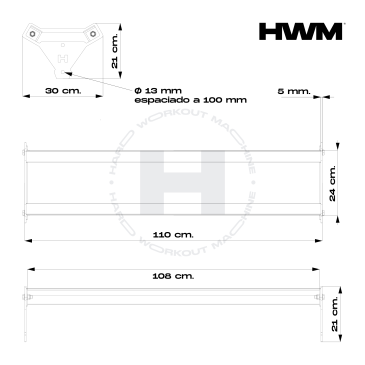 Accesorio compatible con Power Rack Alpha Series (ver más), Half Rack Alpha Series HWM® (ver más) o racks de 110 cm de ancho interno, con perforación de 13 mm espaciado a 100 mm.