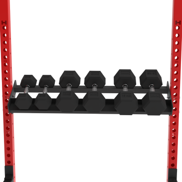 Accesorio compatible con Power Rack Alpha Series (ver más), Half Rack Alpha Series HWM® (ver más) o racks de 110 cm de ancho interno, con perforación de 13 mm espaciado a 100 mm.