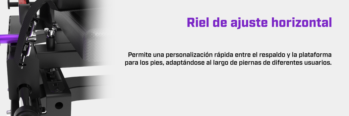 El respaldo de alta resiliencia proporciona un soporte estable sin restringir el movimiento, manteniendo una trayectoria natural de la cadera. En lugar de la configuración tradicional con barra, el PB401 utiliza un cinturón de resistencia de alta elasticidad con un sistema de hebilla de liberación rápida, que ofrece longitud ajustable, conexión suave y mayor comodidad. El riel guía horizontal permite un ajuste rápido entre el respaldo y la plataforma para los pies, adaptándose a usuarios de diferentes alturas y longitudes de pierna. La plataforma antideslizante texturizada para los pies garantiza una pisada estable y una correcta alineación del tobillo, mientras que los soportes para la banda permiten una resistencia adicional al final del rango para intensificar la contracción máxima. Las ruedas de transporte integradas facilitan el reposicionamiento, mejorando la usabilidad general.