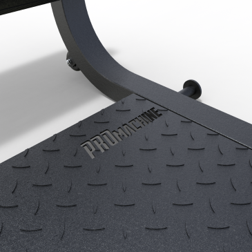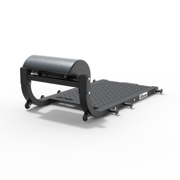 Construido para soportar el entrenamiento más exigente, este banco resiste una carga máxima de 250 kg. Incluye una plataforma para pies diamantada para mayor estabilidad, seis soportes para anclar bandas elásticas, una manilla frontal y ruedas para facilitar su transporte.