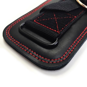 Su diseño exclusivo es fabricado con materiales de primera calidad, resistentes al desgaste y muy duraderas en el tiempo, y gracias a sus costuras reforzadas y un anillo de acero en D te permiten anclar las tobilleras a cualquier máquina de polea o bandas elásticas.