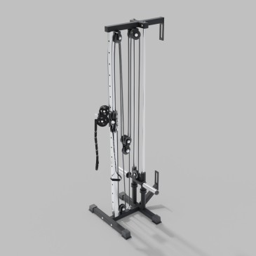 Es la única polea del mercado que ofrece 17 posiciones de ajustes diferentes, una carga máxima de 100 kg y una amplia gama de ejercicios que puedes realizar en ella. Gracias al sistema de polea con rotación 180° la máquina se adapta fácilmente al movimiento, permitiendo un ejercicio más cómodo y aumentando la funcionalidad.